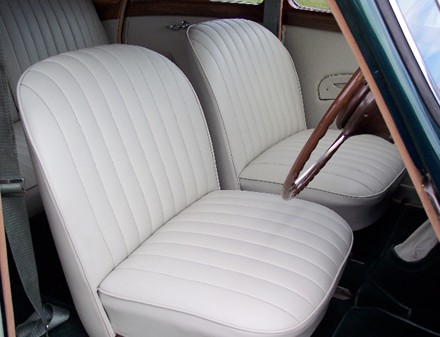 Classic Riley An English car of the early fifties...has been re-trimmed in soft leather and wool bottle green carpet. Front seat cushion springs and foam were remade together with new boards for the doors and felt headlining. |
