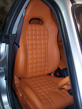 Retrimmed in Sand colour Muirhead leather. A very unique design with in excess of 500 eyelets, perforated inserts and a sewn square weave design makes this interior one that really stands out and has a very striking appearance. |