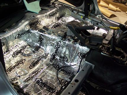 Amongst the main task of covering the rexy's seats in plush leather we also stripped the interior carpet and door trims to install dynamat sheeting to the floor and inner door-skins. An extremely good product for it's acoustic properties, not only creating a quiet ambience for the occupants it also assists and compliments the new sound system installed by our freinds at Car Audio Excellance in High Street Penrith. |